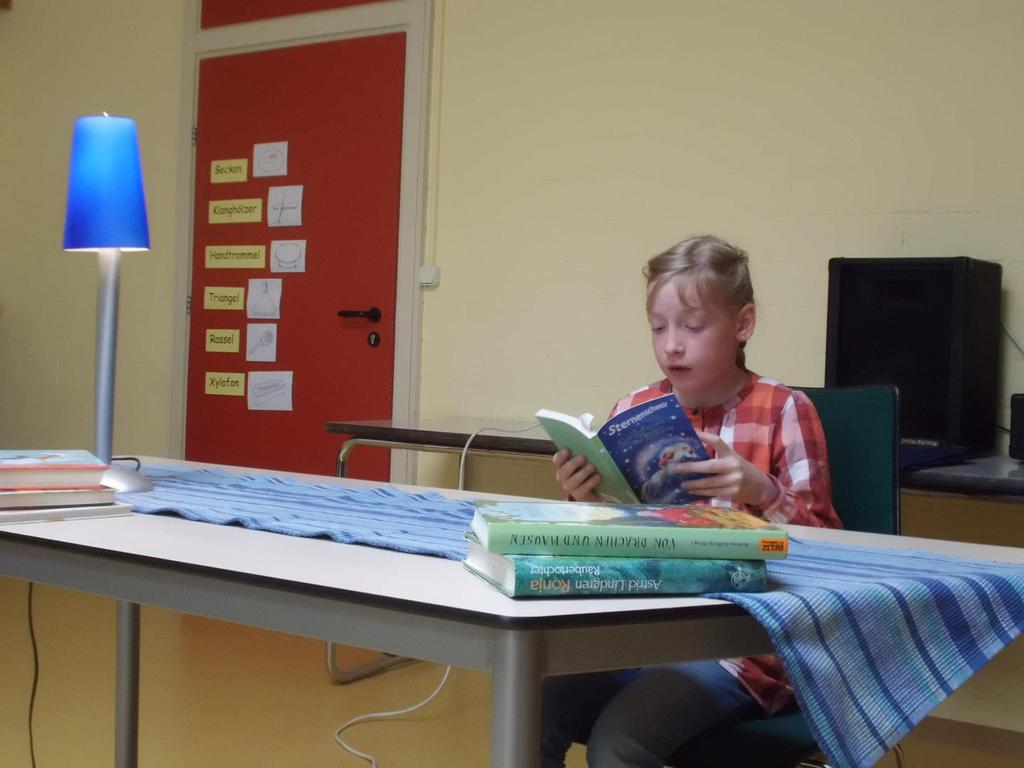 Dem begeisterten Publikum, bestehend aus dem jeweiligen Jahrgang, lasen die Kinder aus ihren Lieblingsbüchern vor. Am Ende fiel der Jury aus Kolleginnen und einer Elternvertreterin die Entscheidung nicht leicht. Sie ermittelte mit Hilfe eines Bewertungsbogens die Siegerinnen und Sieger.